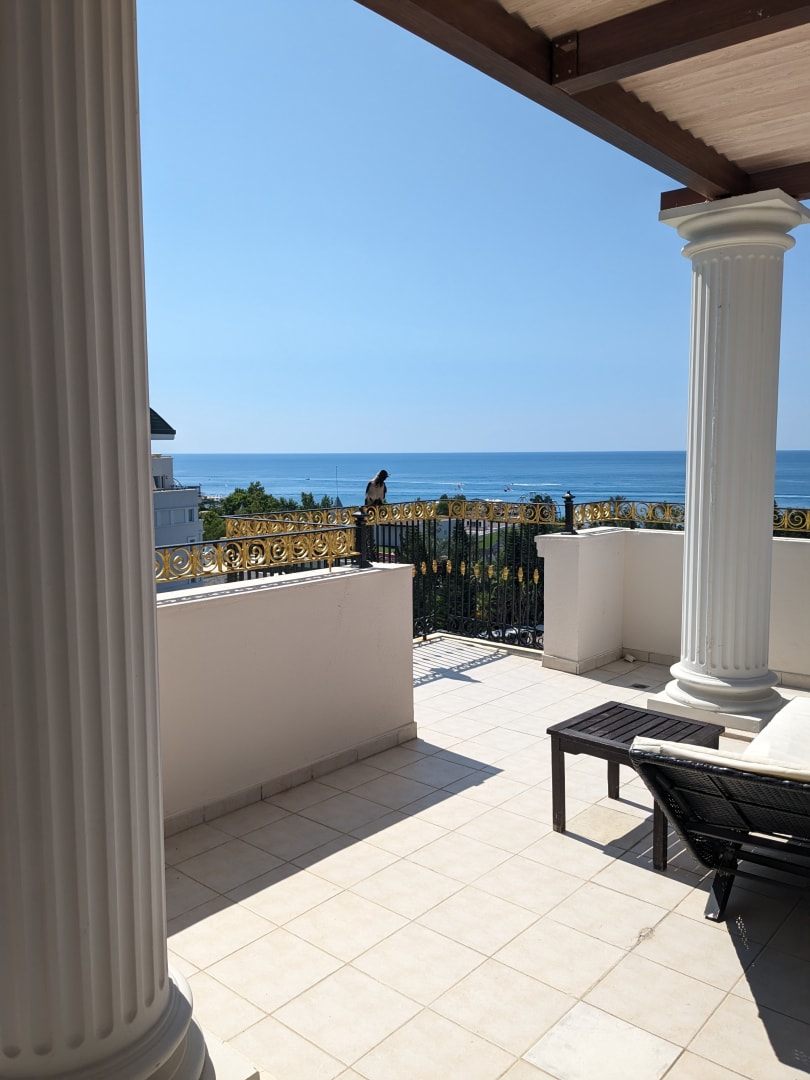 Der Blick von der Terrasse. Morgens bis abends Sonne. Tägliche Reinigung.