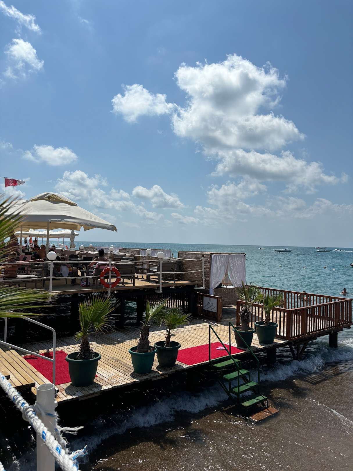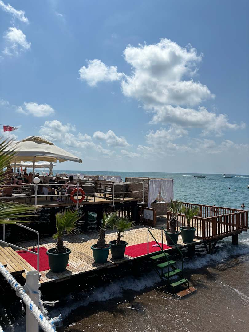 Steg mit einer Bar. Liegen und Bestuhlung zum verweilen vorhanden.