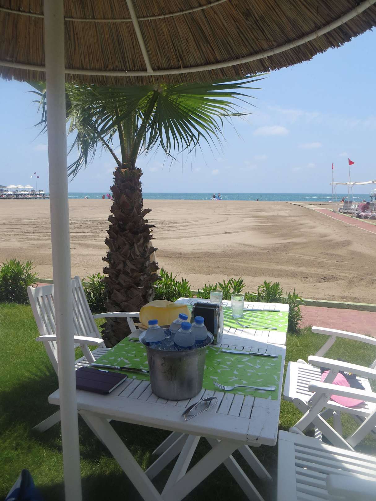 Tisch vor unserem Pavillon am Strand