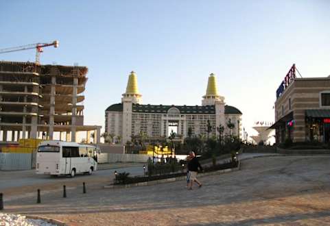 Eingerahmt vom Rohbau und dem Sultan-Basar