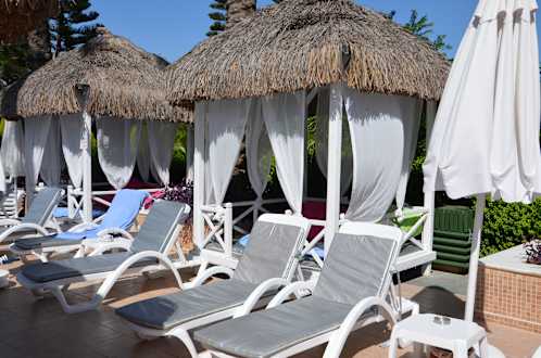 Liegen und Hütten am Pool