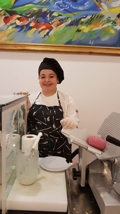 Die nette Bedienung vom Käsestand
