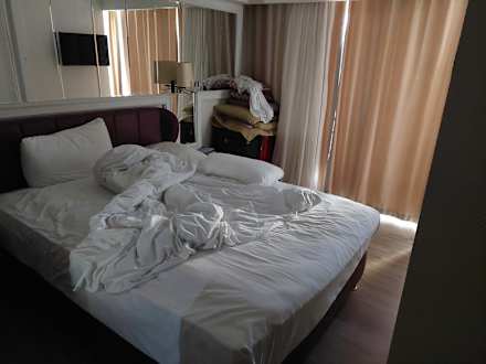 Das Schlafzimmer: sehr klein, das will man nicht lange schlafen.