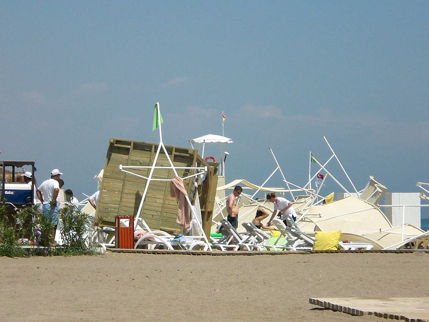 Eine heftige Windböe verursachte Chaos am Strand beim Nachbarhotel (Delphin Imperial)...Offensichtlich Glück im Unglück...