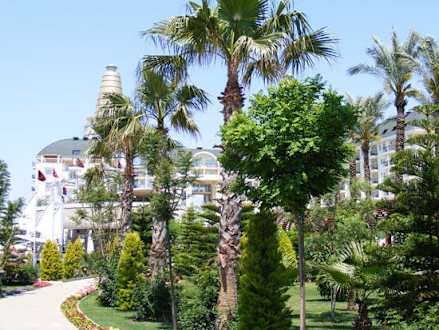 Gartenansicht, Blick zum Hotel