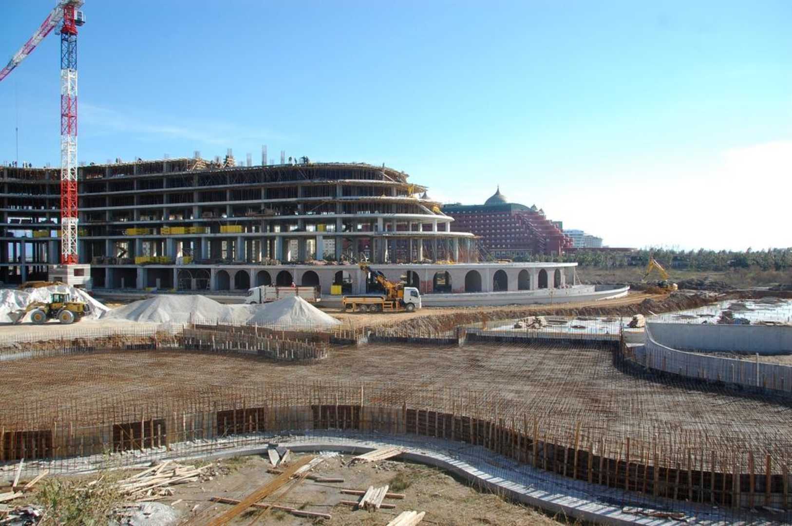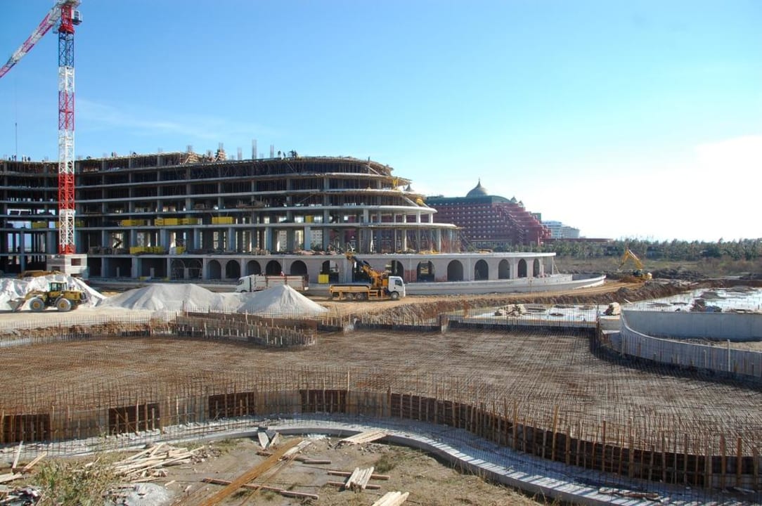 Ausblick von der Frühstücksterrasse auf die Baustelle