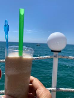Ein kleiner Slushcafe am Steg am Meer
