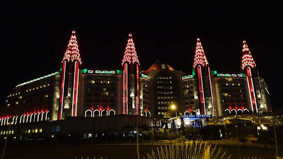 Das Hotel leuchtet in verschiedenen Farben