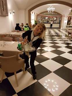 Roller Girl im Restaurant Top
