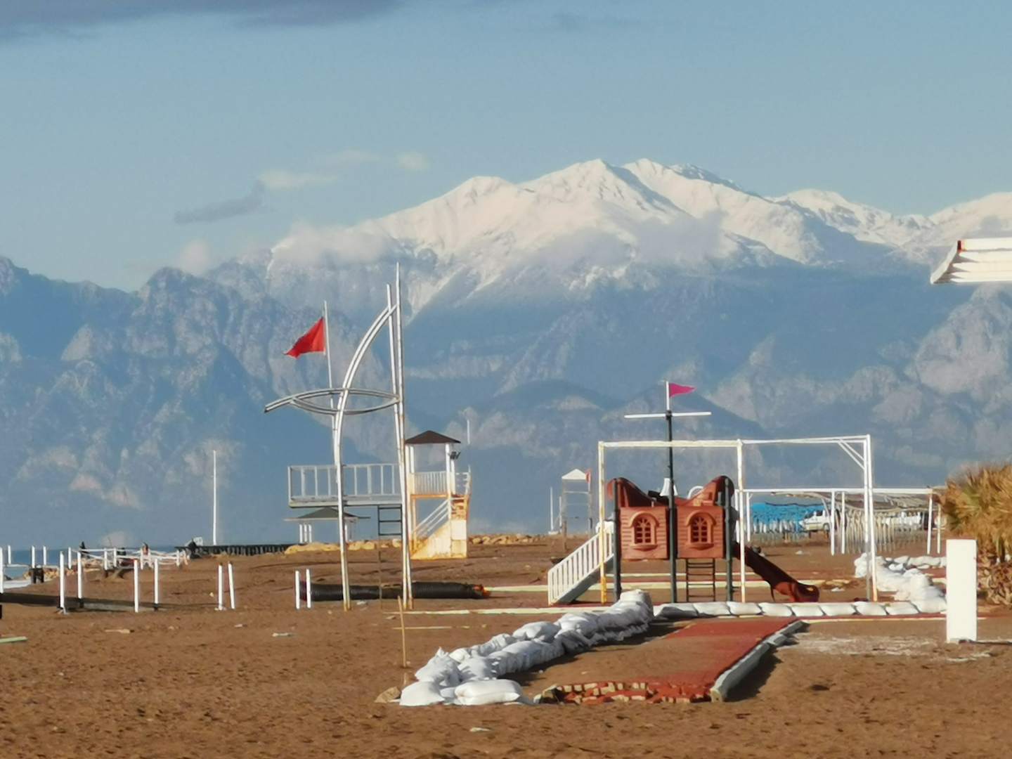 Unten Strand, oben Schnee, des is schee !