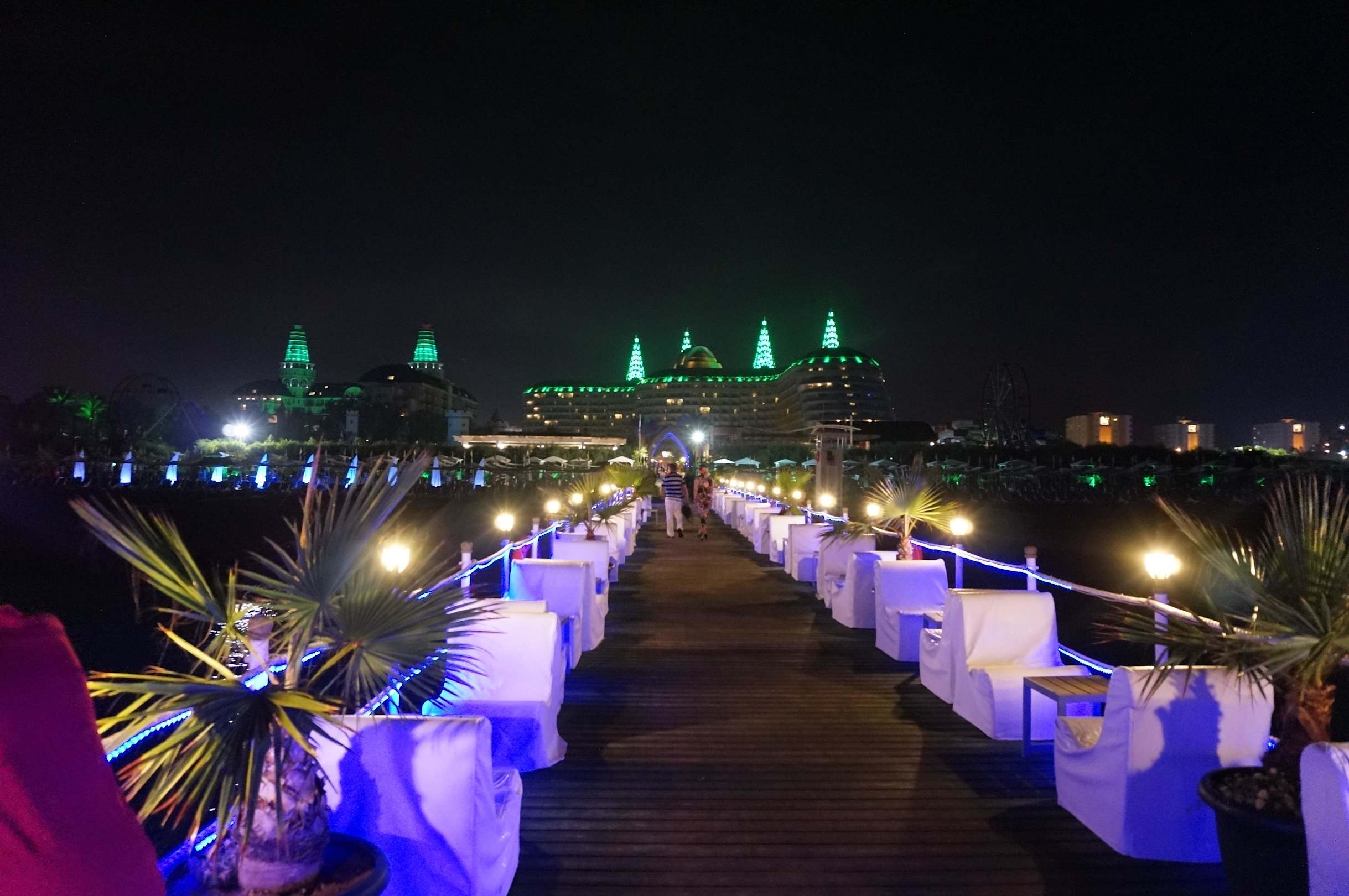 Vanop de pier uitzicht op het hotel