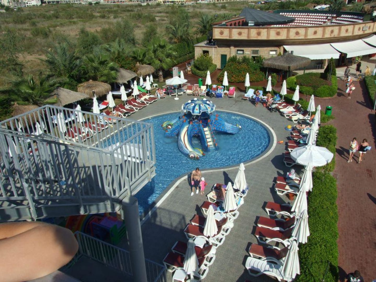 Sicht von Rutschen auf Kinderpool