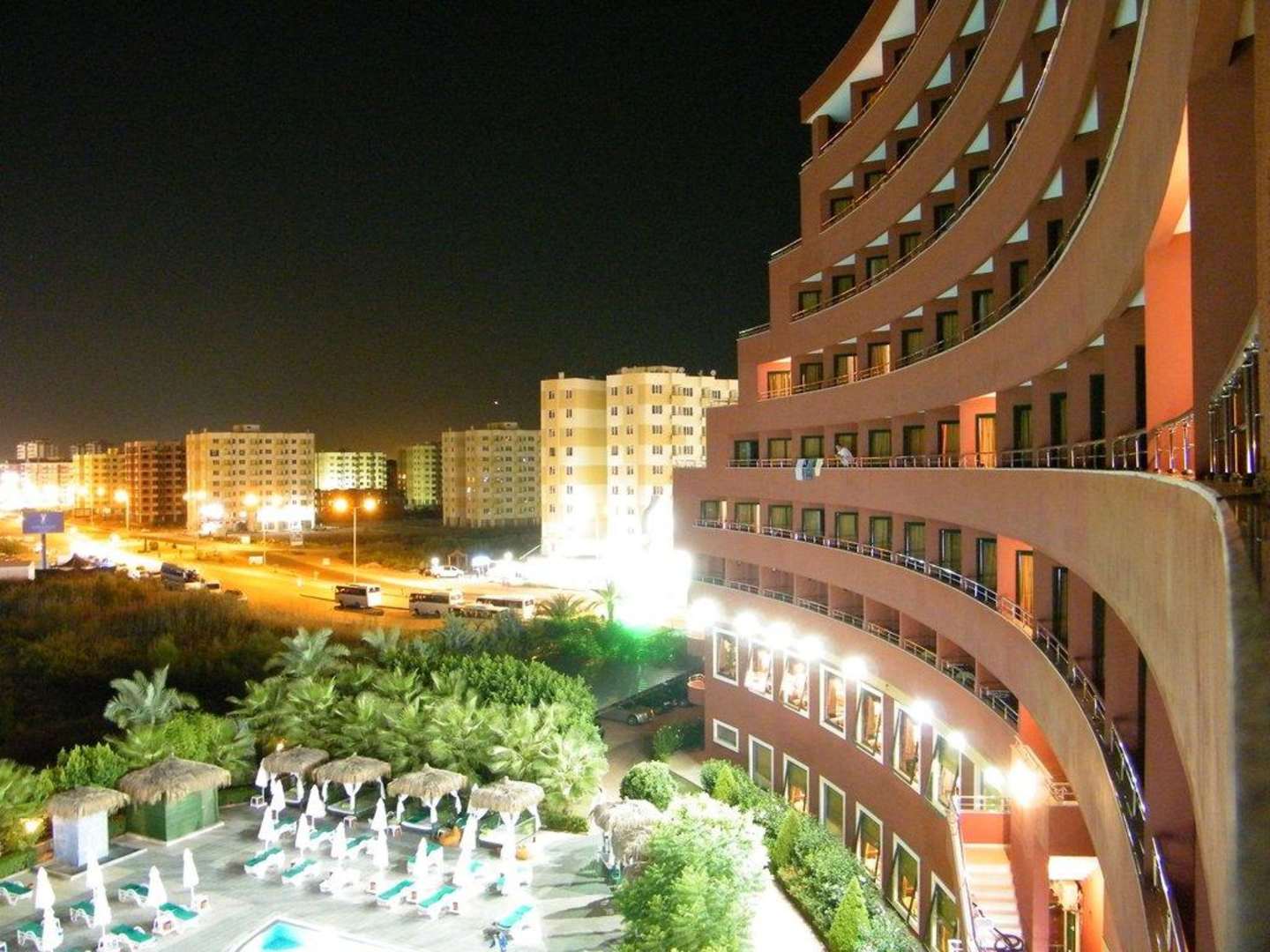 Blick von Zimmer landeinwärtsBlick nach rechts von unserem Zimmer aus in Richtung Verbindungsstraße, vorn der Relaxpool