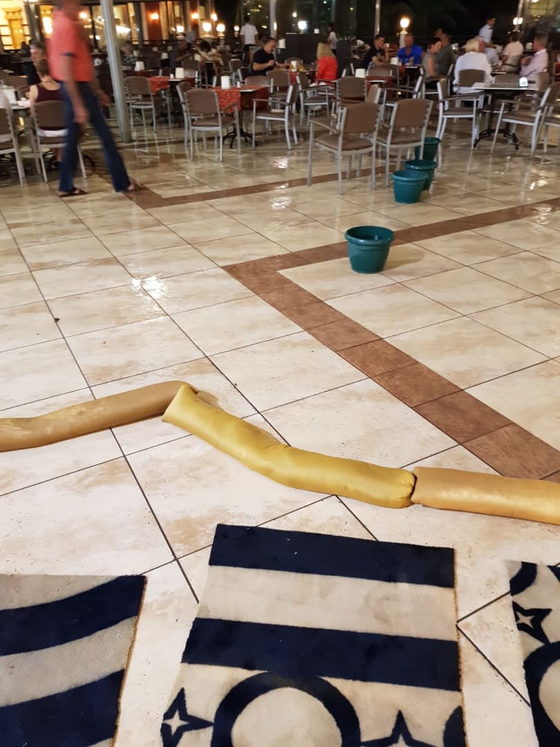 Abend essen im Haupt Restaurant mit Schimmel alles nass nach Regen , die Schimmel Decken halten den Regen nicht stand und das ganze schmutz Wasser landete im essen , weder eine Erklärung noch ein Entschuldigung vom Management , Vorsicht