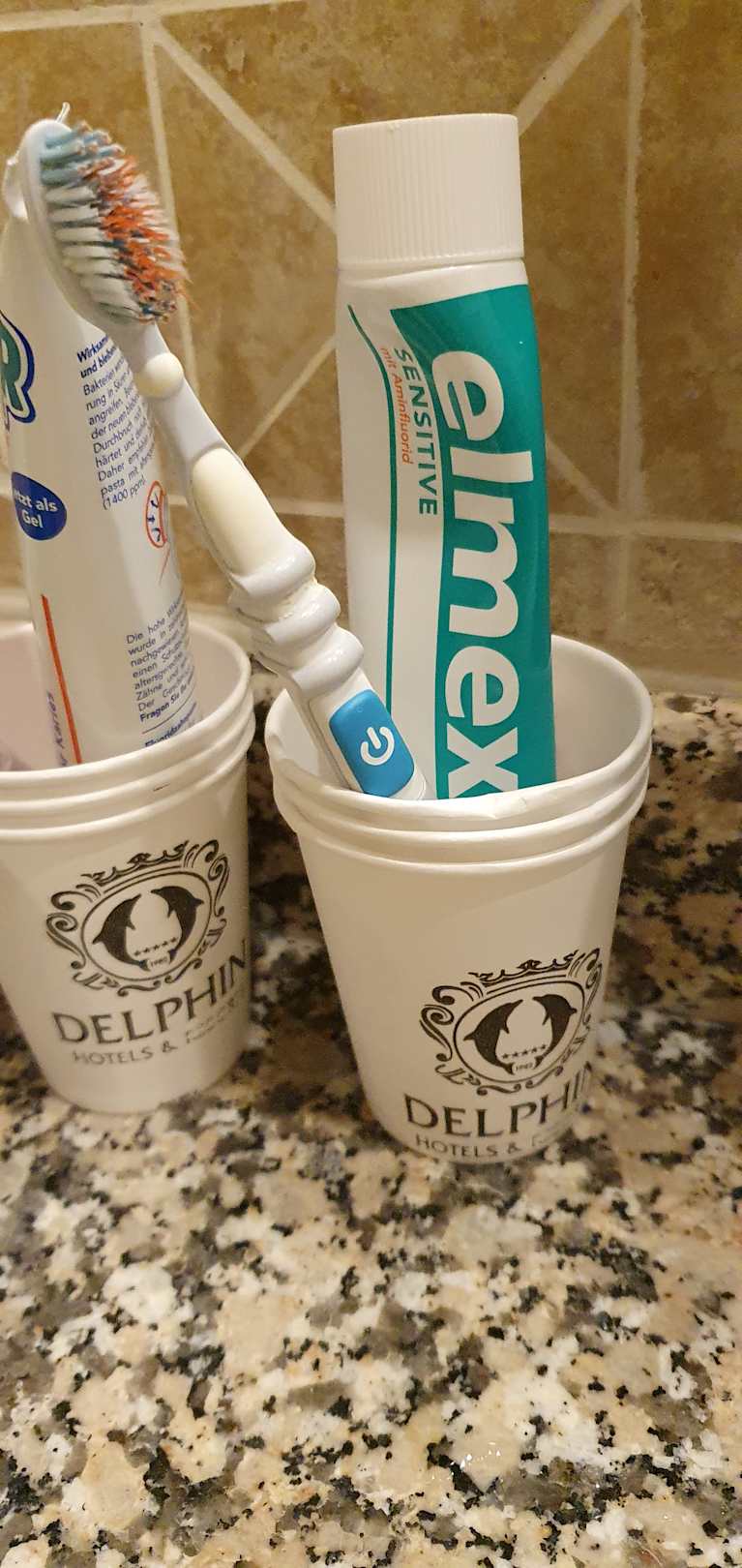 Pappbecher als Zahnbürstenhalterung