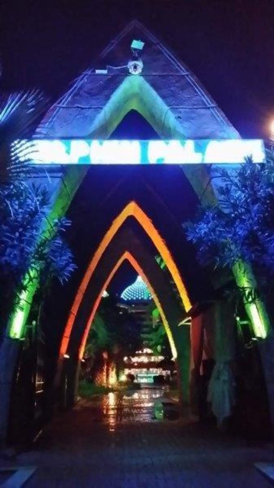 Hotelzugang vom Strand bei Nacht