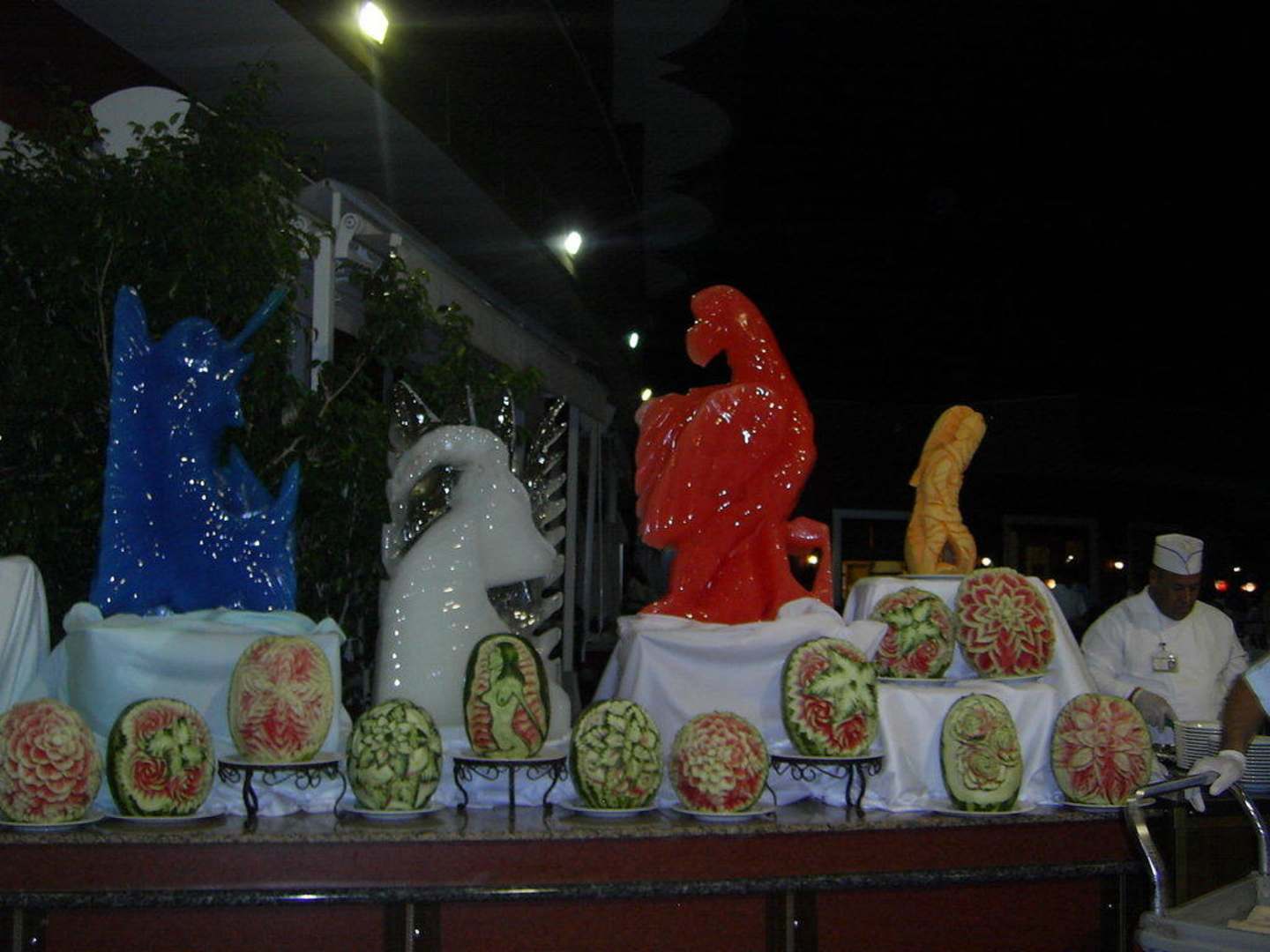 Eisskulpturen und Melonen