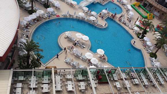 Aussicht vom 8 Stock auf den Pool