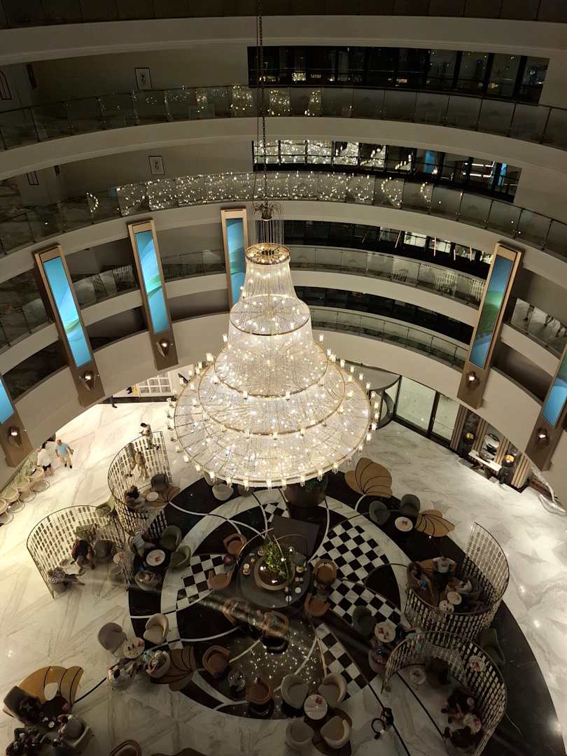 Blick aus einem gläsernen Fahrstuhl