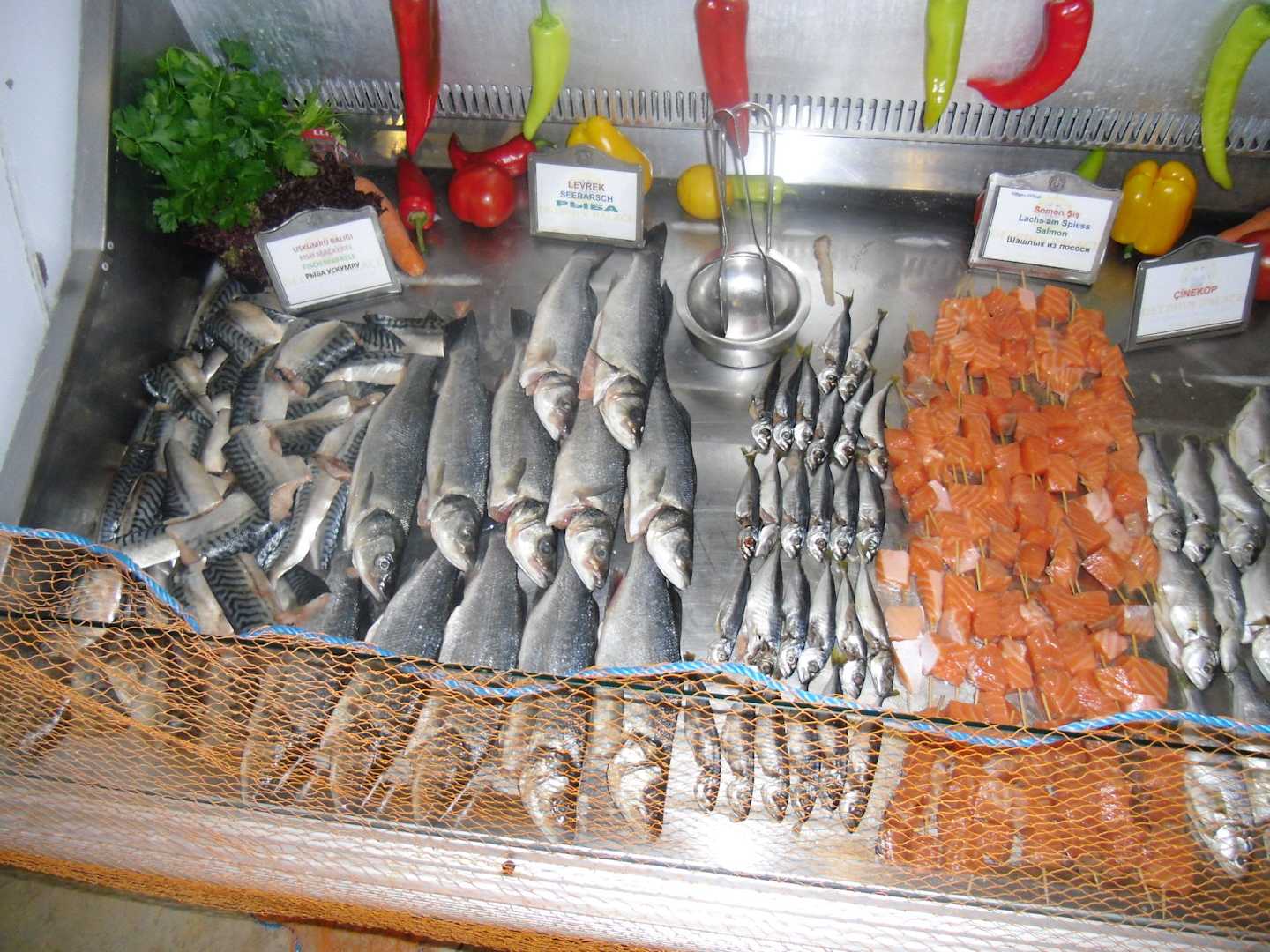 Fischauswahl im Hauptrestaurant