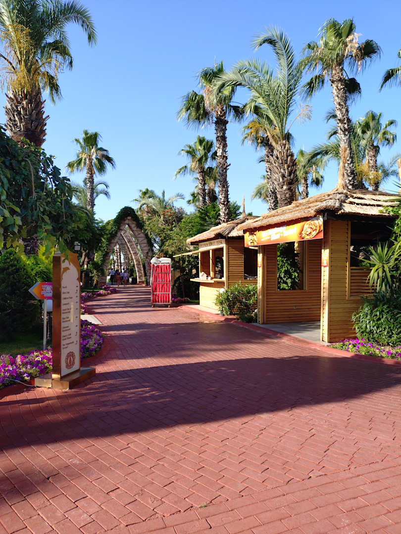 GastroVerschiedene Hütten mit Döner, Pommes, Nuggets, Gözleme, Kaffee und Süßem hinter dem Hauptpool am Weg zum Strand