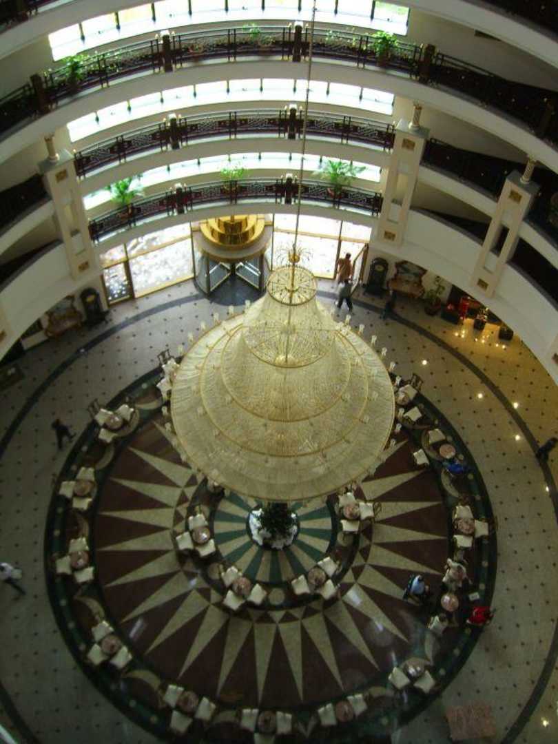 Aussicht aus dem Panoramaaufzug in den Empfangsbereich