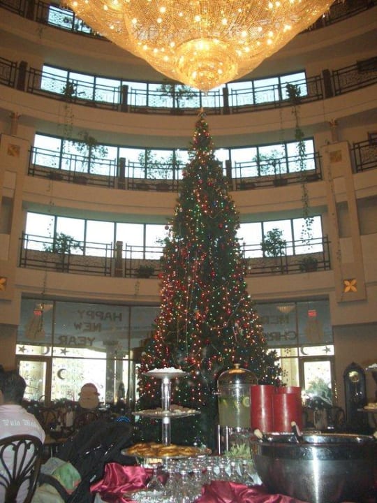 inmitten der Lobby ein wunderschön geschmückter Tannenbaum