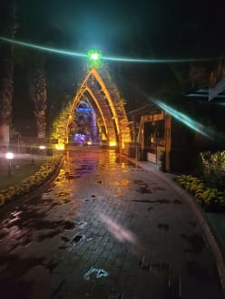 Weg zum Strand bei Nacht und Regen