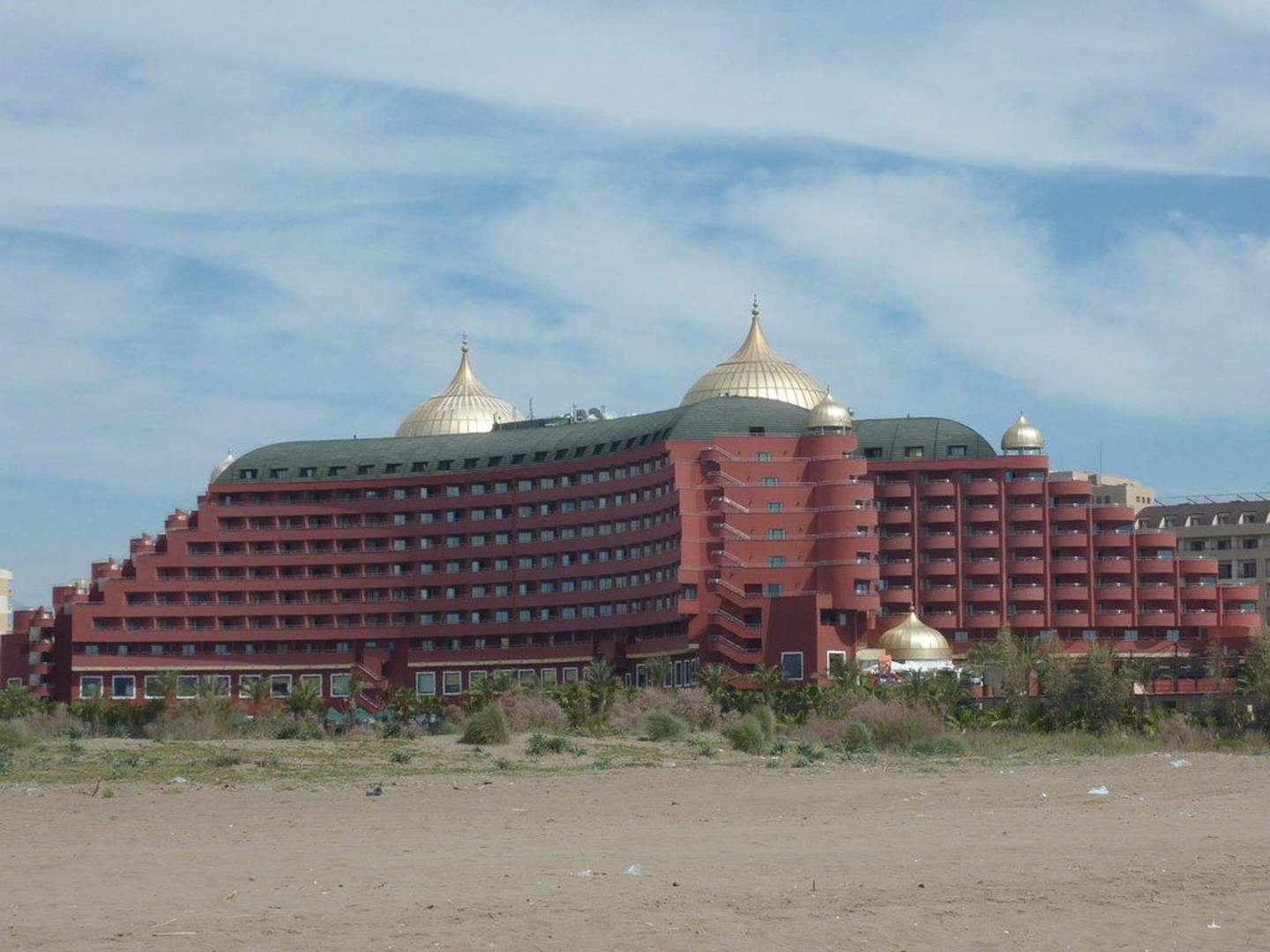 Blick aufs Hotel vom Strand