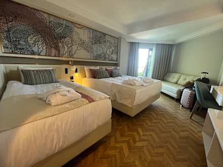 ZimmerSehr ästhetisch eingerichtetes, sauberes Zimmer. Das hatten wir für zwei Personen. Seitlich ein großes Sofa.