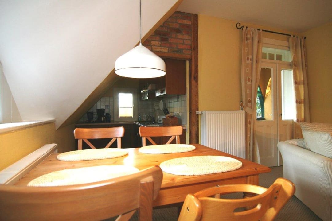 Essbereich mit KochniescheBlick vom Essbereich in Richtung Kochniesche und Balkon, der Ferienwohnung 3