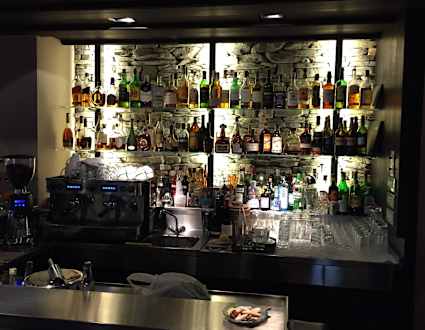 Die wohlsortierte Bar am Kamin
