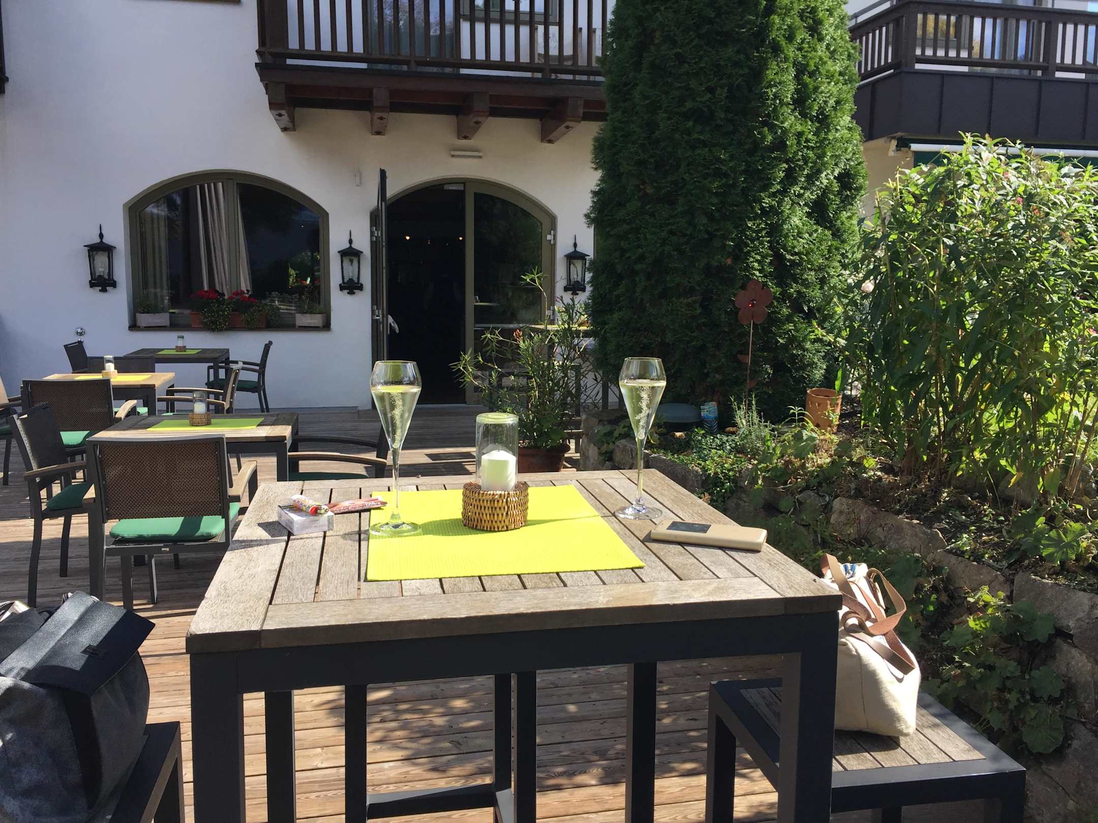 Begrüßungssekt im Restaurant-Außenbereich