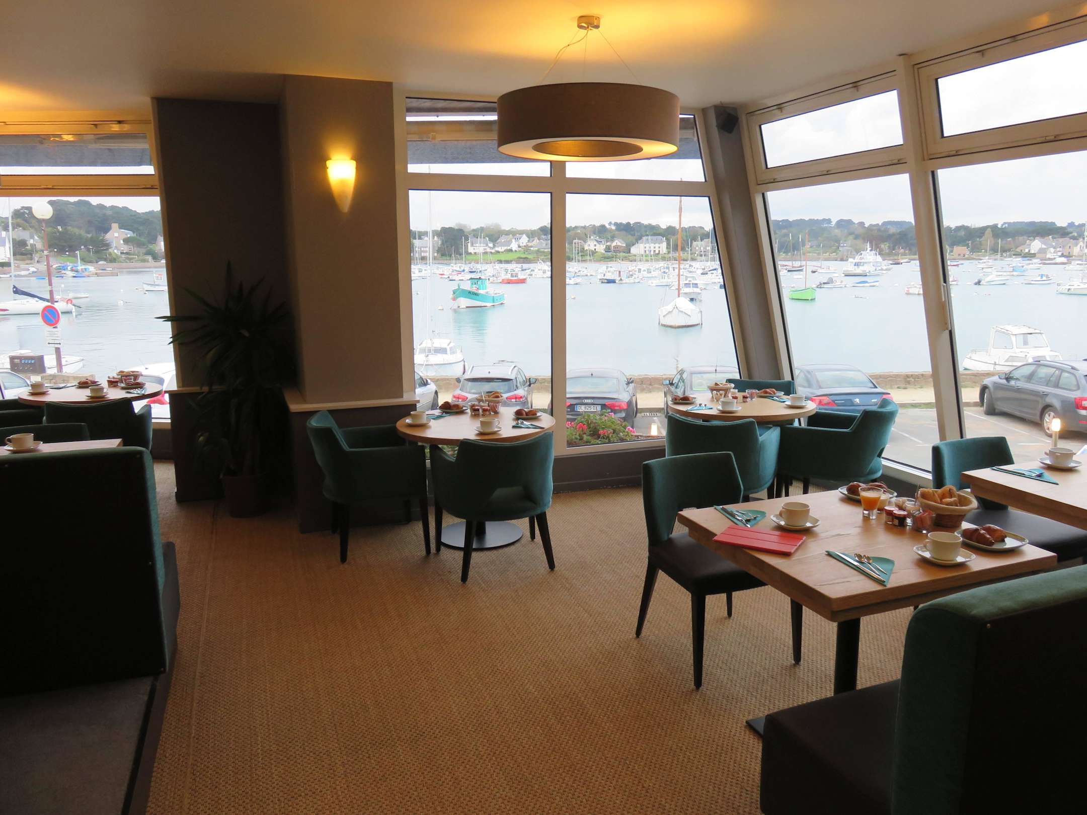 Frühstücksraum mit Sicht auf den Hafen