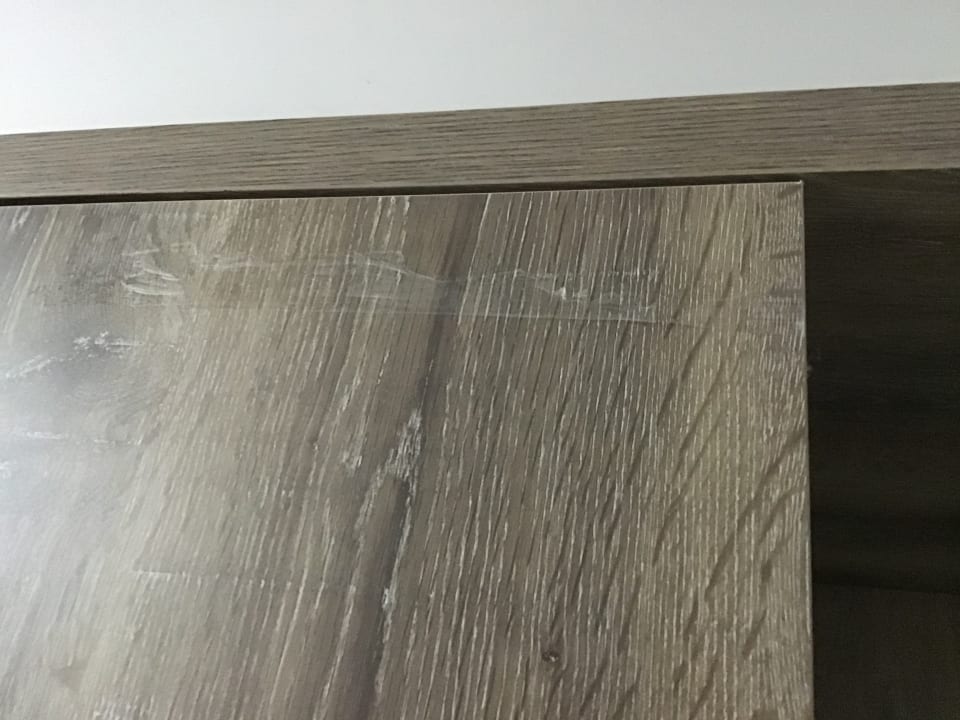 Klebestreifenreste am Garderoben-/Spiegelschrank