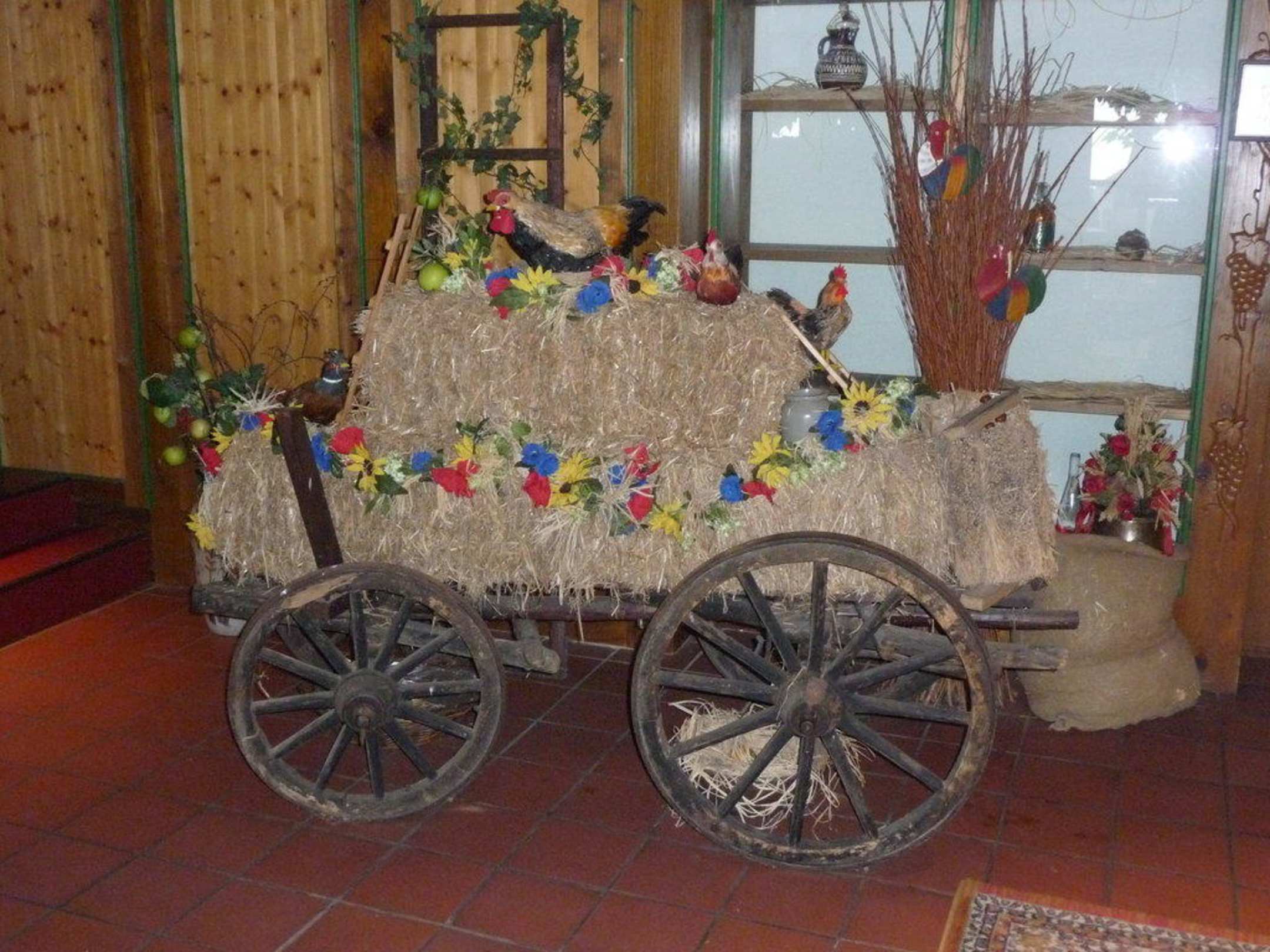 Heuwagen im Eingangsbereich
