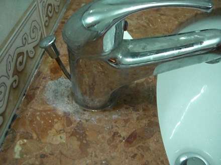 Schmutziges Waschbecken bei Ankunft.