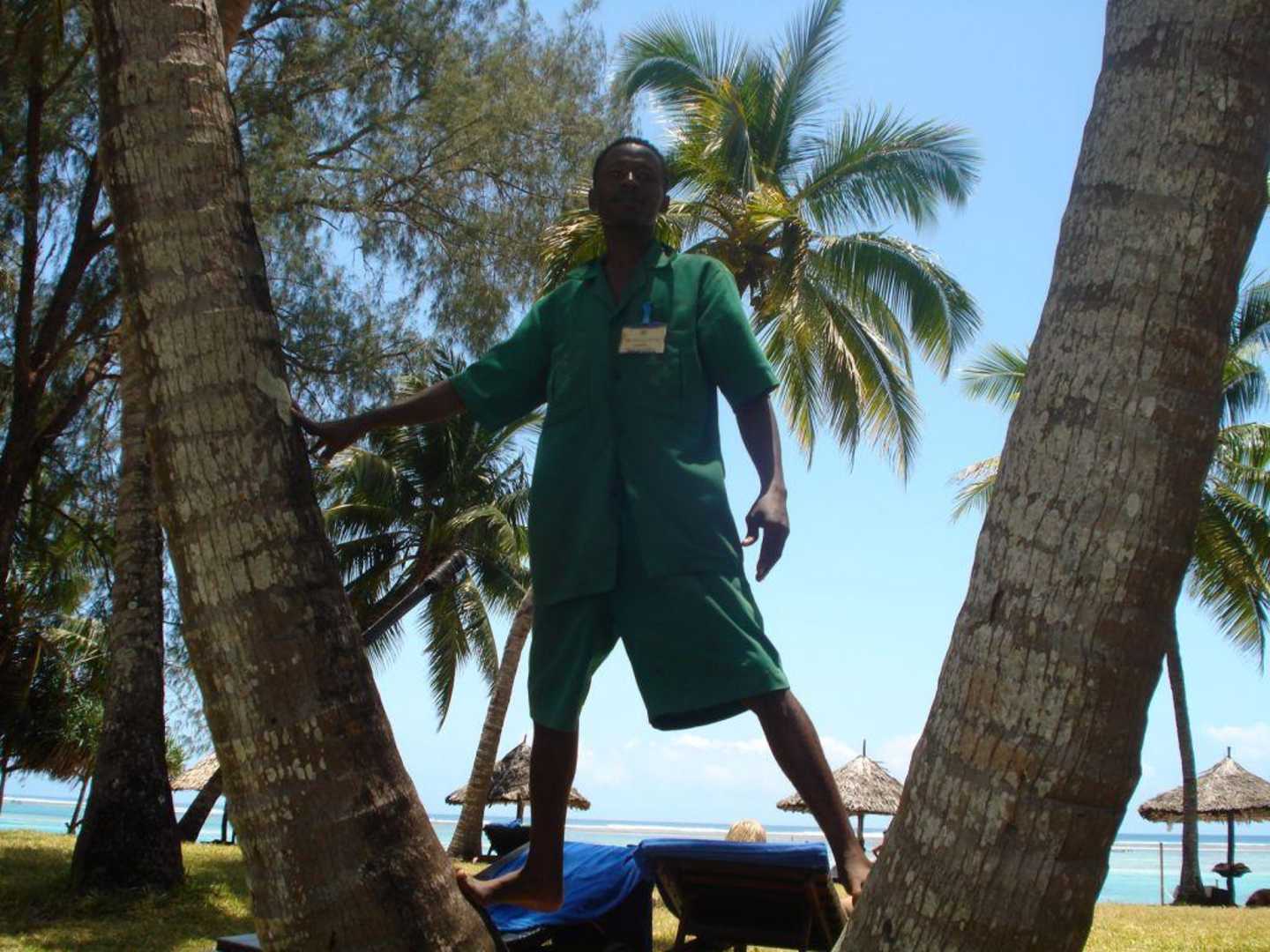 Das war unser Gärtner, der uns immer frische Kokusnüsse runter holte.
