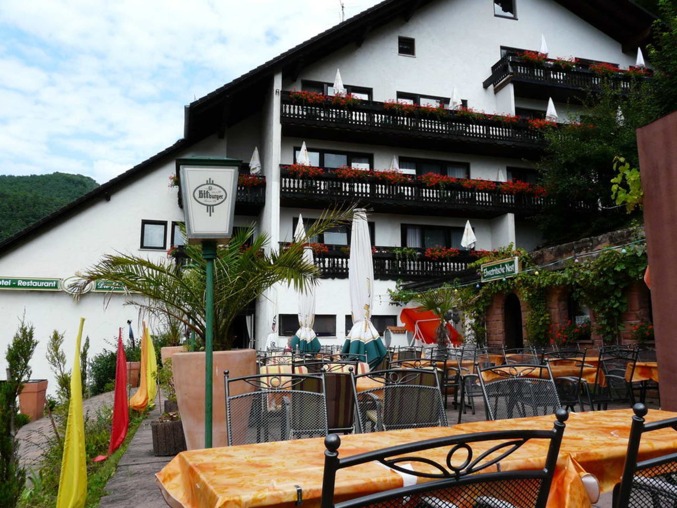 Terrasse mit Hotel