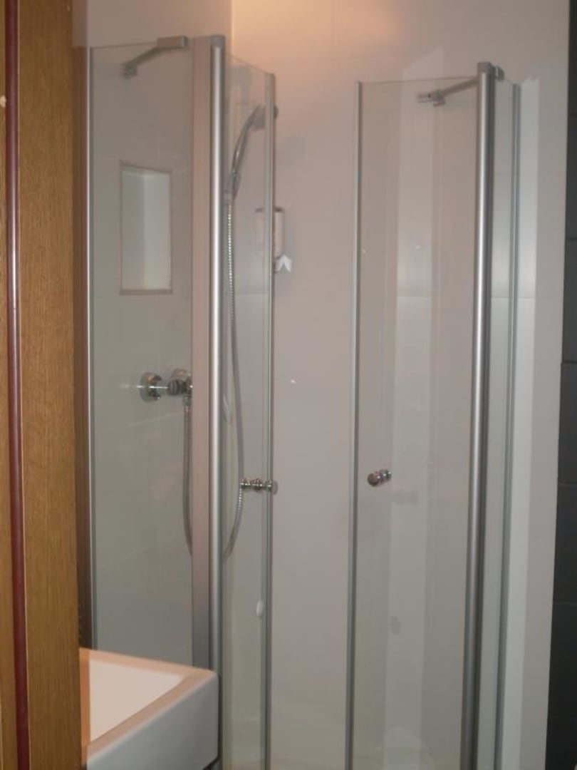 Die Duschkabine ist sehr klein.
