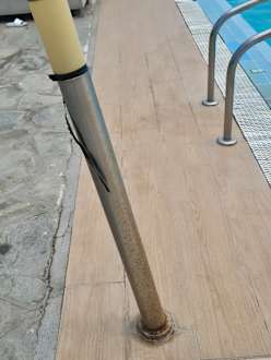 Lampen bitten um mehr Abstand zum Pool oder Rostschutz.