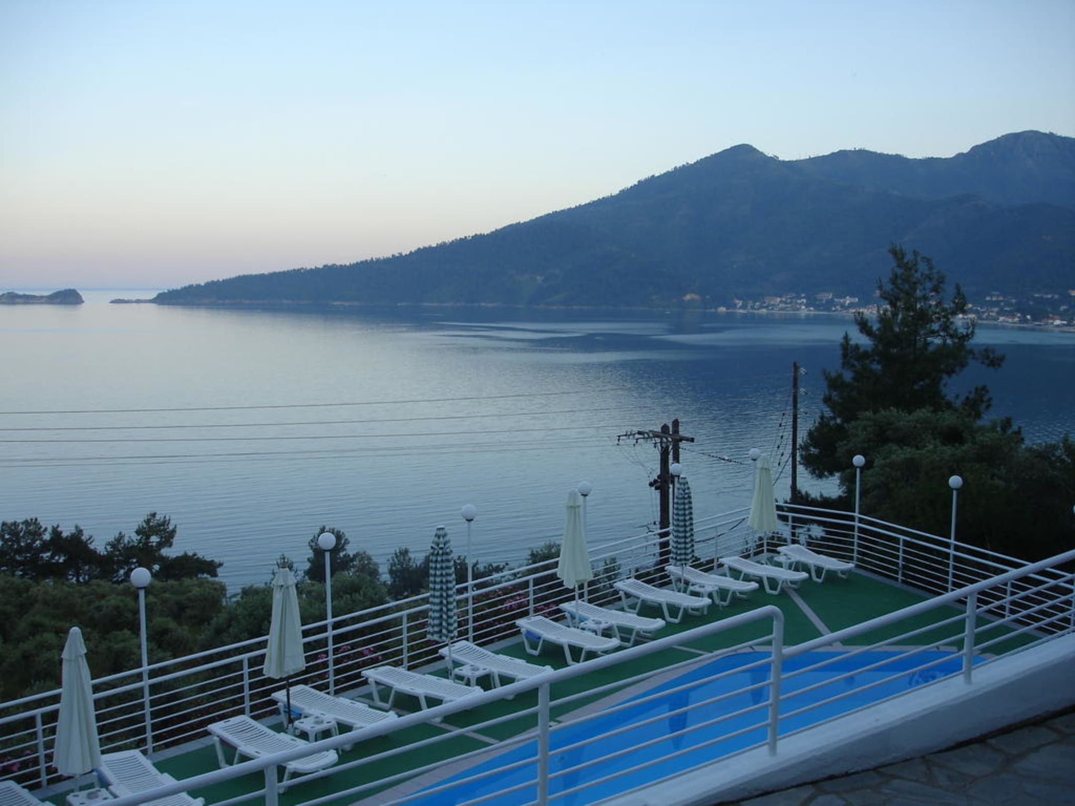 Blick von Restaurantterrasse mit Abendstimmung