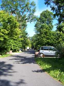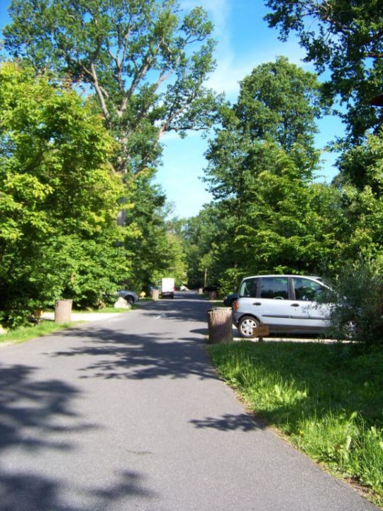 Blick auf den Trail, vor unserem BungalowSo sehen die Trails aus. Jeweils rechts und links (bei jedem Mülleimer) sind Bungalows