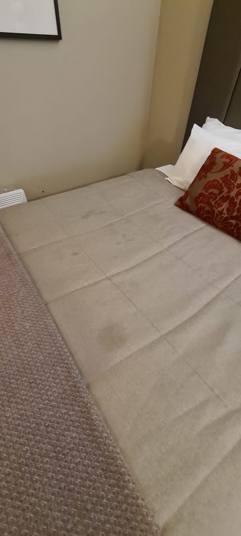 verschmutzte Bettoberdecke