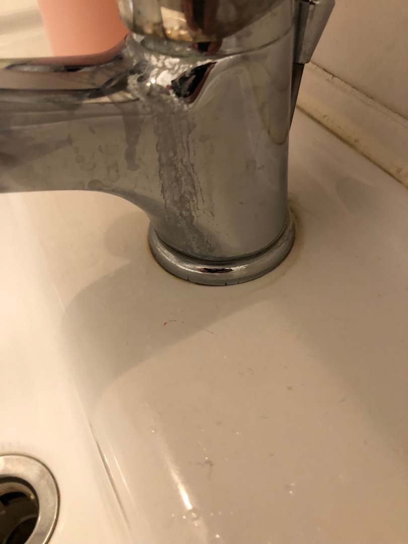 Dreckiger und verkalkter Wasserhahn.