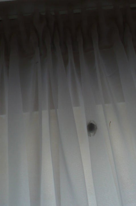 Dicke, fette Spinne im Foyer am Vorhangdiese wurde während unseres gesamten 3 tägigen aufenthaltes nicht entfernt