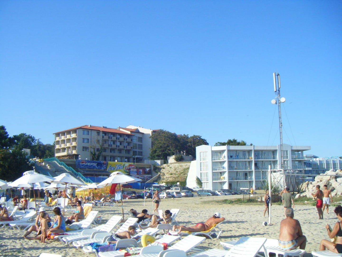 Hinten links Hotel Dolphin vorne Strandabschnitt
