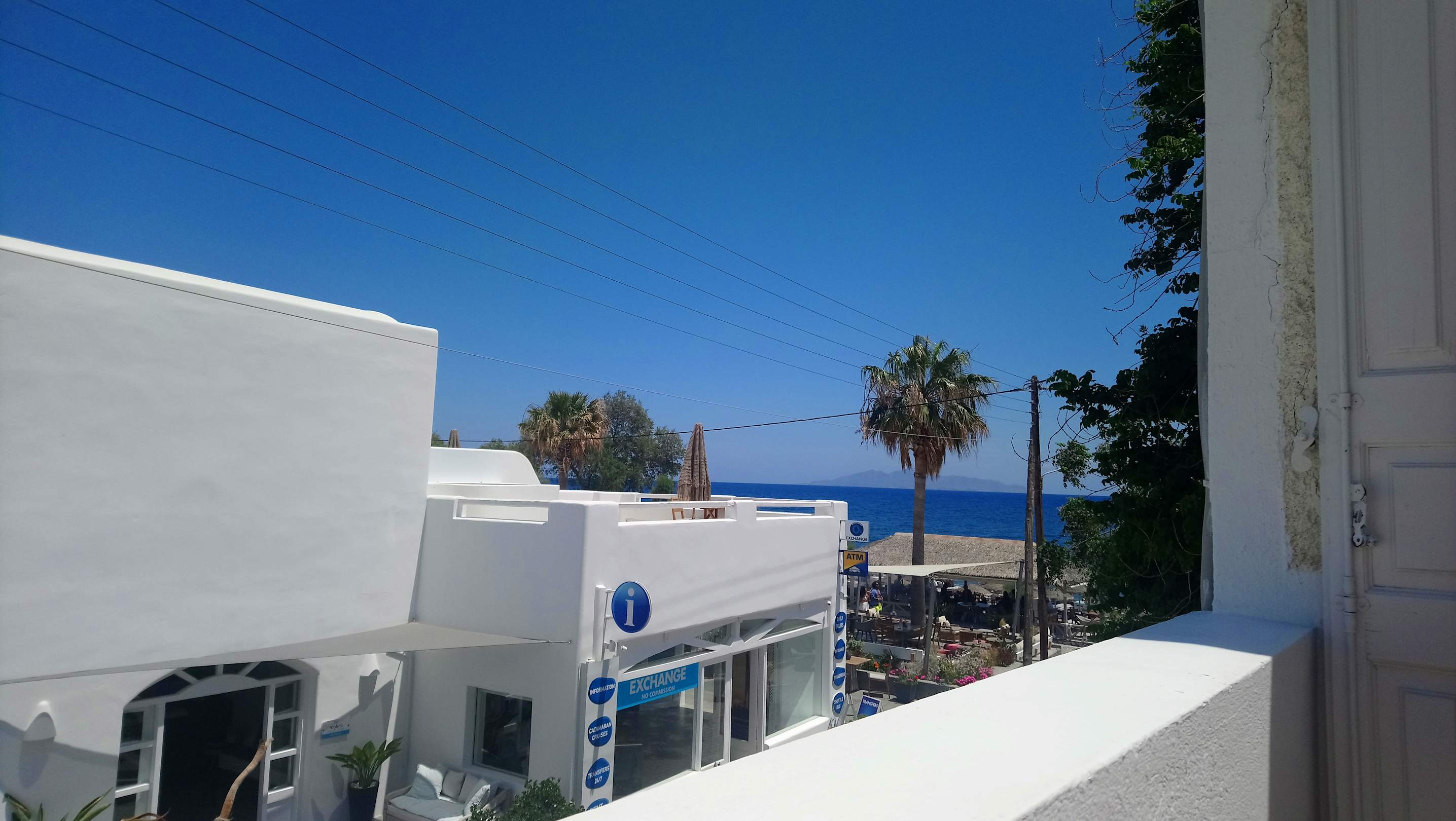 Der Blick zur Straße und zum Strand vom Balkon