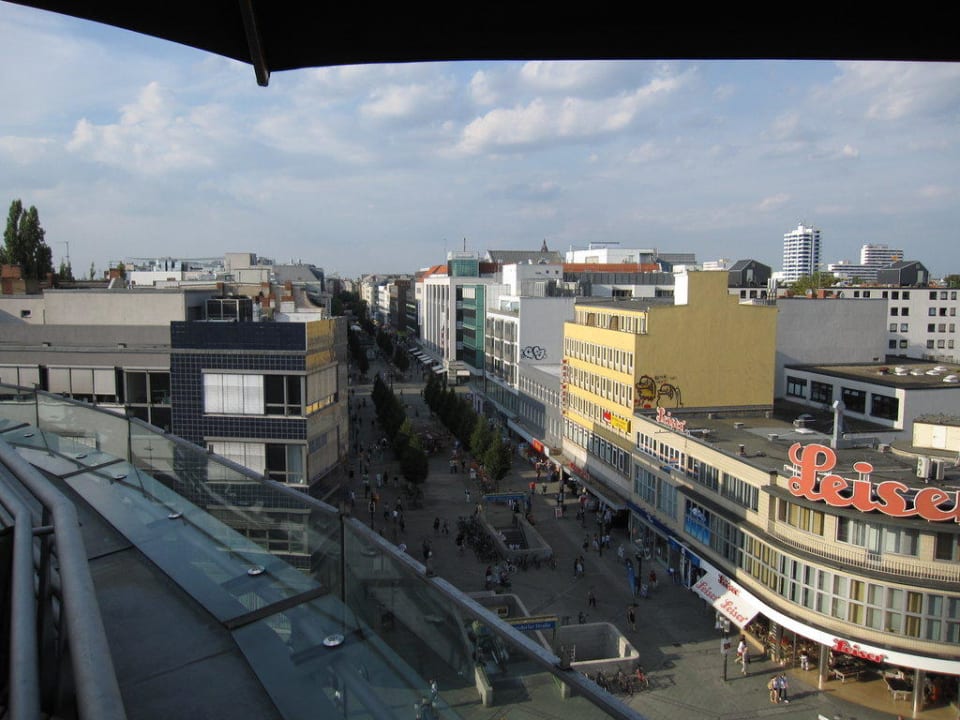 Blick von der Dachterrasse auf die Einkaufsstraße