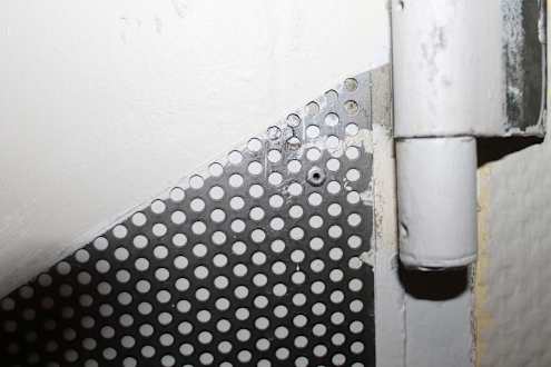 Die Nieten an der Brandschutztüre zerstören deren Schutzfunktion. Im Brandfall kann die Türe die geforderten Schutzfunktionen nicht mehr erfüllen